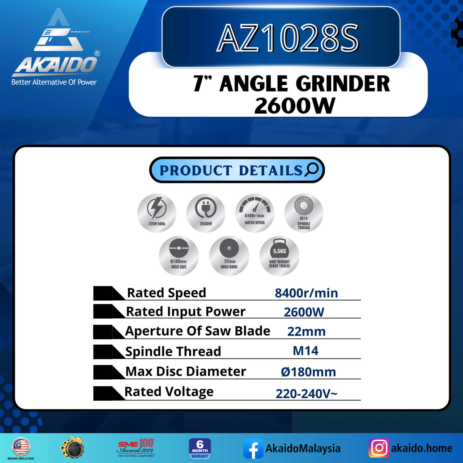 Built for professionals and serious DIYers, the AKAIDO AZ1028S 7″ Angle Grinder delivers high power and precision for cutting, grinding, and polishing a variety of materials. Its robust motor and ergonomic design make tough jobs easier and more efficient.