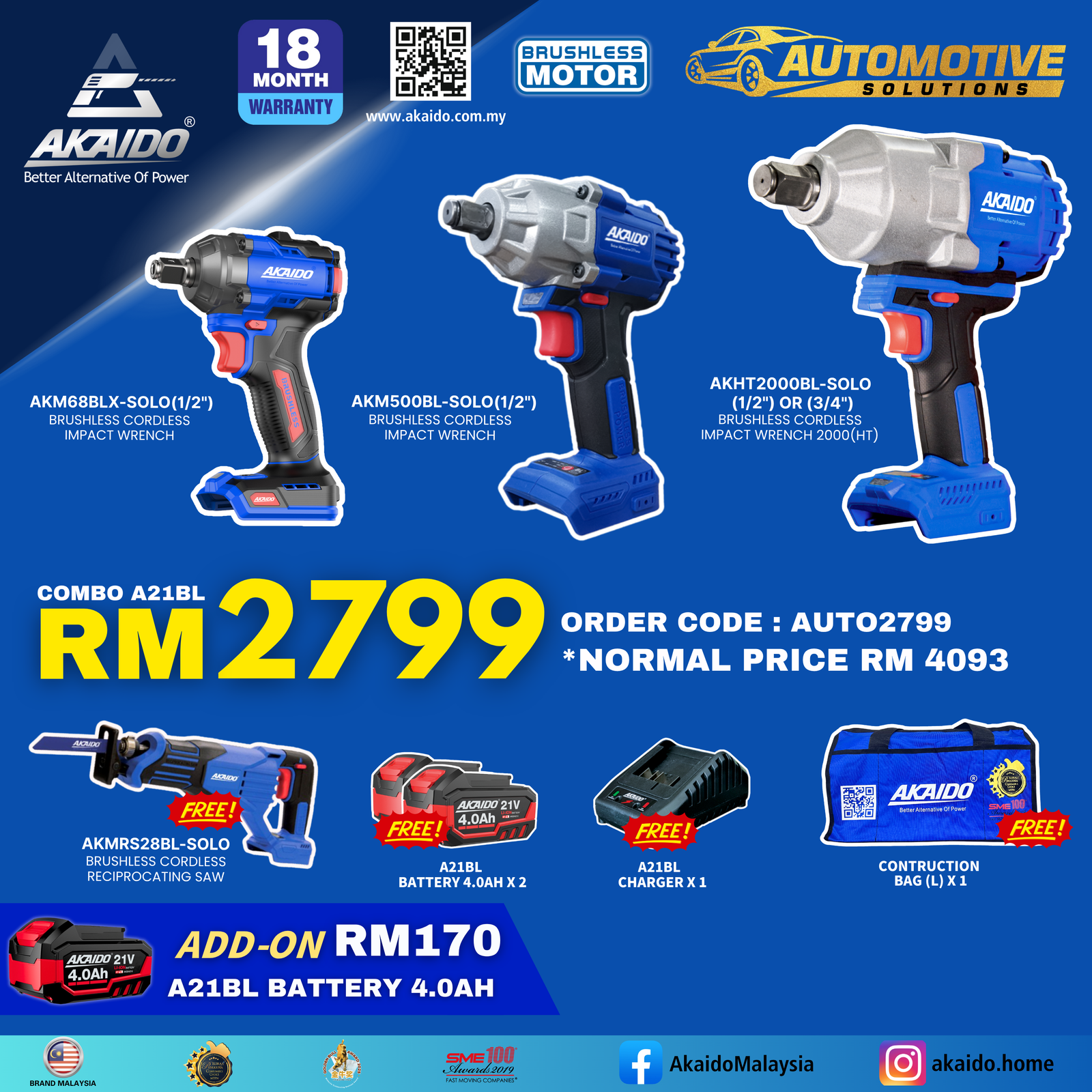 Brushless Cordleaa Impact Wrench AKHT2000BL - Solo: This impact wrench is designed to provide exceptional torque and control, making it ideal for heavy-duty tasks.