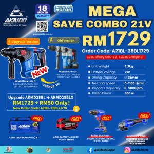 Upgrade your woodworking arsenal with the AKAIDO A21BL MEGA SAVE COMBO - WOOD1399 power tool set. This comprehensive package includes three essential brushless cordless tools to tackle a variety of tasks efficiently.