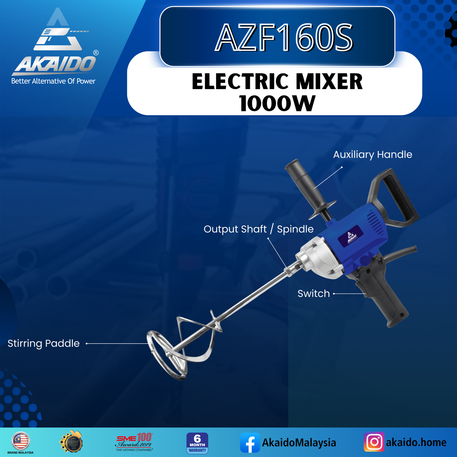 Designed for both professional and home use, the AKAIDO AZF160S Electric Mixer delivers powerful performance for mixing cement, mortar, plaster, adhesives, and other construction materials efficiently. Its robust motor and ergonomic design make even heavy-duty mixing tasks easy and comfortable.